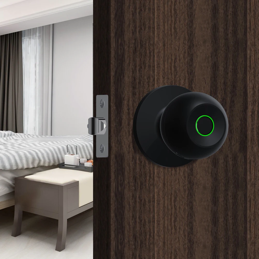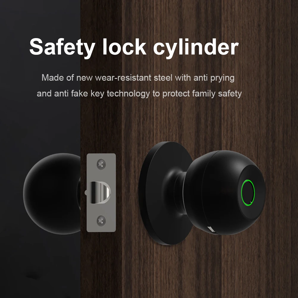 Feature: 1. Multiple Unlocking Methods: Enjoy the convenience of three unlocking methods - biometric fingerprint recognition, emergency mechanical key unlocking, and remote unlocking via the Graffiti App connected through Bluetooth-Compatible. With the ability to switch between three modes - passage/privacy/normal - you have complete control and flexibility. 2. Premium Quality Materials: Our lock is constructed with a front ball aluminum alloy and stainless steel surface parts, ensuring a sturdy structure that prevents unauthorized access. It has a strong load-bearing capacity and features a clear, smooth, and easy-to-clean surface resistant to high temperatures. The C-level anti-theft lock core technology further enhances security. 3. Smart and Convenient: Experience the in smart convenience with our lock's Bluetooth-Compatibleconnectivity to the Graffiti App. Easily manage fingerprints, view unlock records, and remotely unlock your door using the app. Create a smarter and more convenient life while safeguarding the security of your home. 4. Rechargeable Battery: The built-in 400mAh rechargeable lithium battery provides an extended battery life of up to six months on a single charge. The Type-C charging/temporary power interface allows for emergency power supply using a power bank if the battery runs out and you find yourself locked outside. The low voltage alarm function keeps you informed about the battery status. 5. Easy Installation: Installing our intelligent spherical lock is a breeze, taking just a few minutes with a screwdriver. It is suitable for wooden or steel doors with a thickness ranging from 33-55mm, making it for residential areas, apartments, offices, and commercial buildings. Easily replace your existing door lock with our lock. Detailed installation instructions are provided for your convenience. Specification: Certification: CE Origin: Mainland China Smart home platform: Tuya Handle Direction: Direction Reversible Ways To Unlock: Bluetooth-Compatible,FINGERPRINT,Mechanical Keys Connectivity: Bluetooth-Compatible Doorknob Funcition: Biometric Finish Type: Polished Suitable Door Type: Wooden Door,Steel Door,Brass Door,Stainless Stell Door Suitable for Mortise: 6085 Protection Level: IP66 Power Supply: Built-in Rechargeable Battery Color: electroplated black, stainless steel (optional) Main material: front ball aluminum alloy + remaining surface parts stainless steel Unlocking method: key, Tuya Bluetooth-CompatibleAPP, fingerprint Fingerprint specifications: semiconductor fingerprint + LED breathing light Fingerprints: 20 Fingerprint pixels: 40*96 Fingerprint resolution: 508dpi Universal lock body: American standard single tongue lock (60-70 adjustable) Motor: M10 motor Lock core: marble lock core Low battery alarm function: 3.3 0.2V (low voltage alarm) Standby power consumption: Standby quiescent current: ≤90uA Working current: Average working current: ≤350mA Power supply method: 400mAh rechargeable lithium battery 3.7V power supply, Type-C temporary power supply interface 5V 2A Life test: 100,000 times Prompt sound: Buzzer prompts navigation Free drop test: drop height: 0.76m; number of drops: cement floor, 1 drop on each of any 6 surfaces Function configuration: channel mode (normally open) + private mode (anti-lock) + door mode Applicable door thickness: 35-55mm Applicable door categories: wooden doors/steel doors/copper doors/composite doors Product size: diameter 75mm *73mm/2.95x2.87inch Single unit weight: 0.68 (Kg)